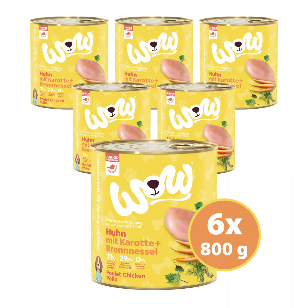 WOW Junior Huhn - kurczak z marchewką i pokrzywą dla szczeniąt 800g