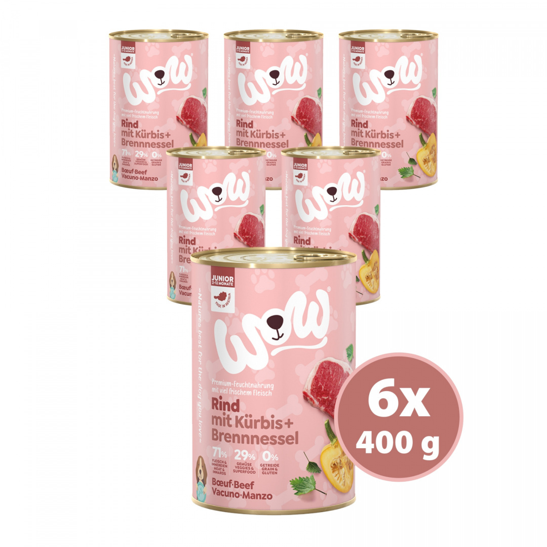 WOW Junior Rind - wołowina z dynią i pokrzywą dla szczeniąt 400g