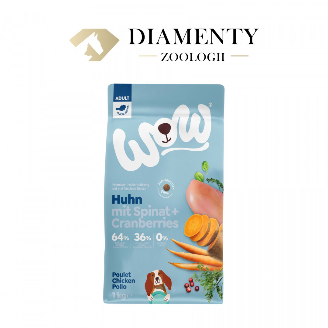 WOW MINI Huhn - kurczak ze szpinakiem i żurawiną dla dorosłych psów małych ras (1kg)
