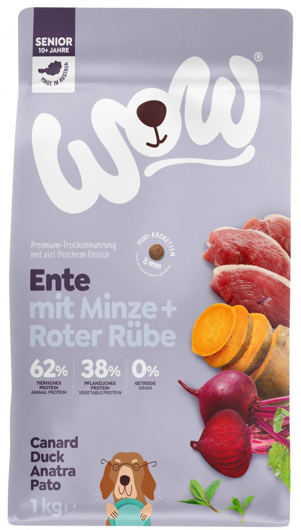 WOW MINI Senior Ente - kaczka z miętą i buraczkami dla starszych psów małych ras (1kg)