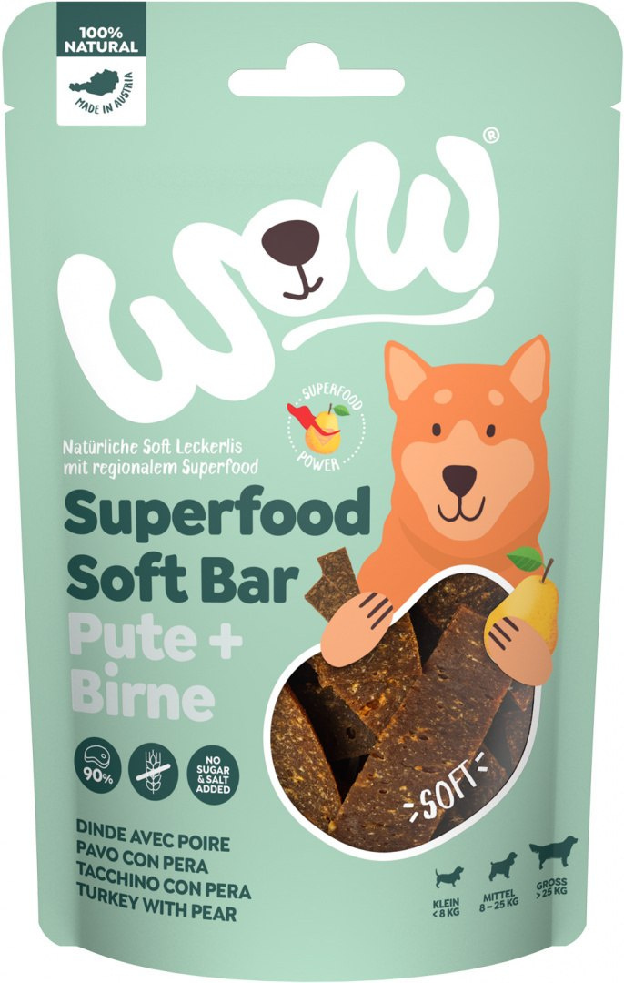 WOW Superfood Soft Bar Pute - mięso indyka z gruszką miękkie przysmaki dla psa (150g)
