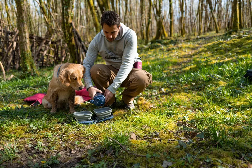 - Wygoda: Zawiera dwie składane, silikonowe miseczki, co ułatwia podawanie jedzenia i picia w dowolnym miejscu.