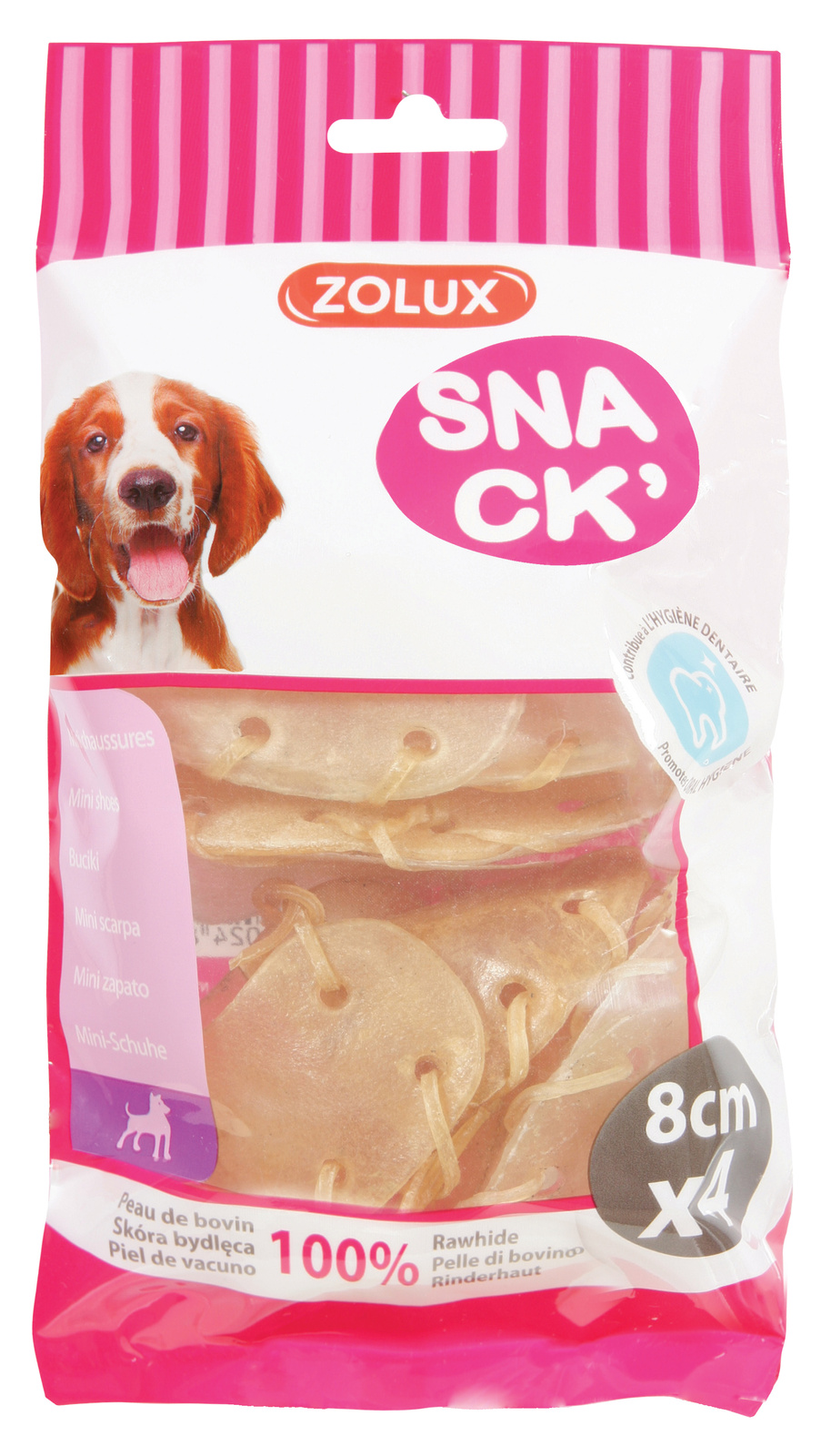 Przysmak dla psa w kształcie buta został wyprodukowany w 100% ze skóry bydlęcej. Gryzienie i żucie tej przekąski sprzyja wzmacnianiu mięśni żuchwy, a dodatkowo korzystnie wpływa na higienę jamy ustnej zwierzęcia. W opakowaniu znajduje się 1 but o długości 13 cm.