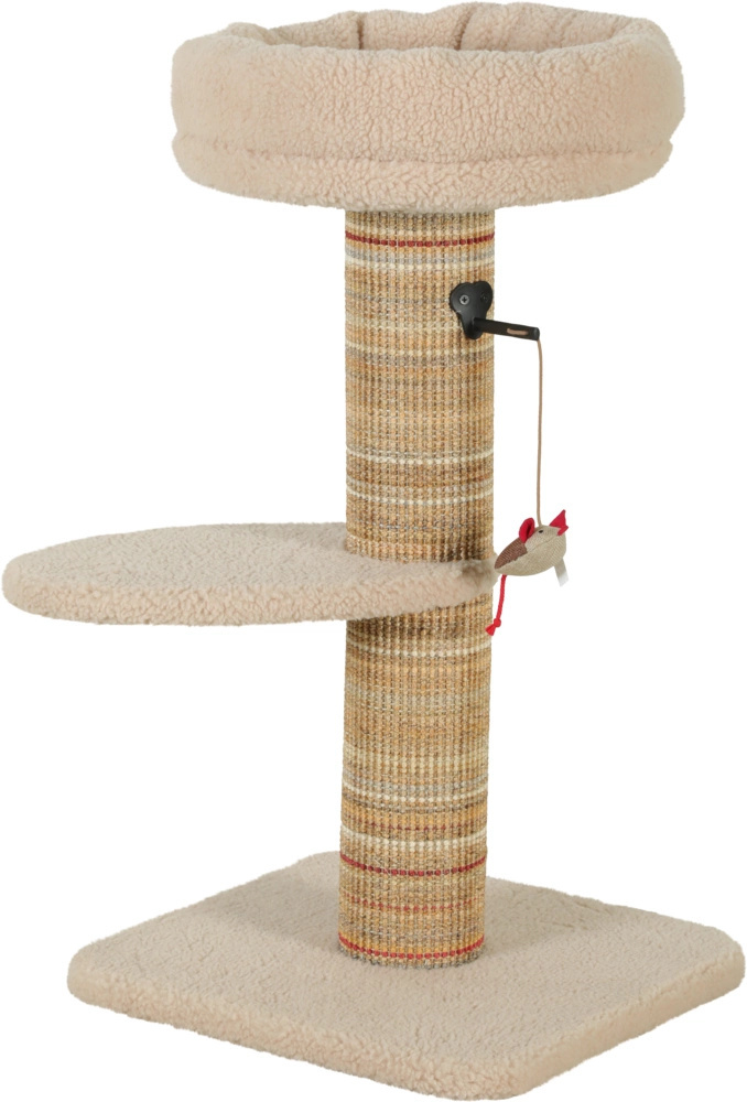 Drapak ZOLUX BOREAL 70 cm beżowy zapewnia kotu nie tylko miejsce do drapania, ale także przestrzeń do zabawy, wspinania się i odpoczynku. Dzięki platformie i legowisku na górze kot zyskuje punkt obserwacyjny, a dołączona zabawka z kocimiętką zachęca do aktywności. Produkt wspiera zdrowie pazurów i chroni meble w domu przed zniszczeniem.