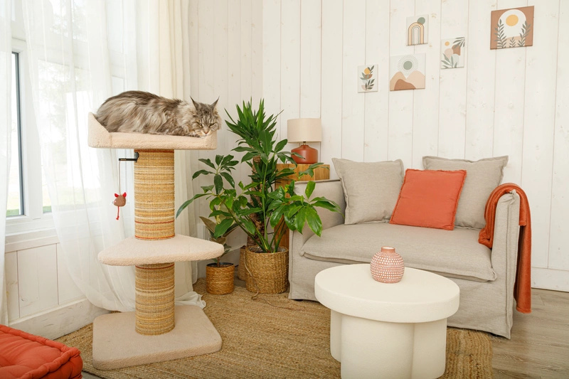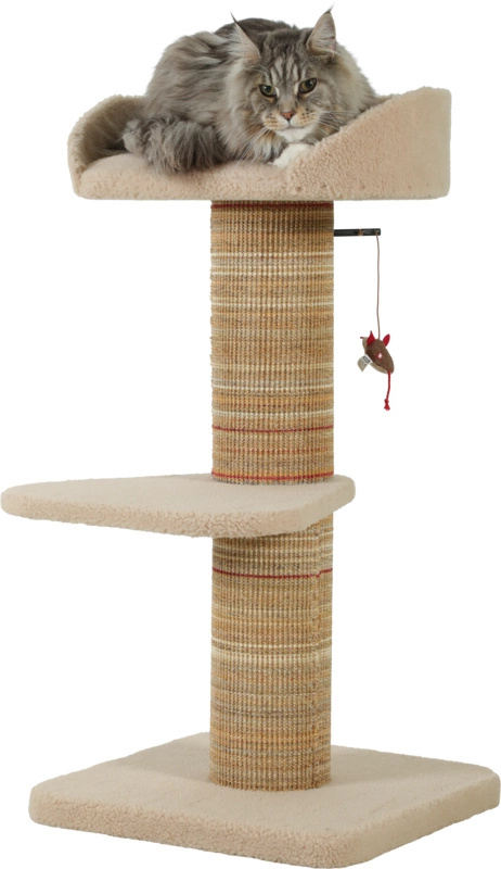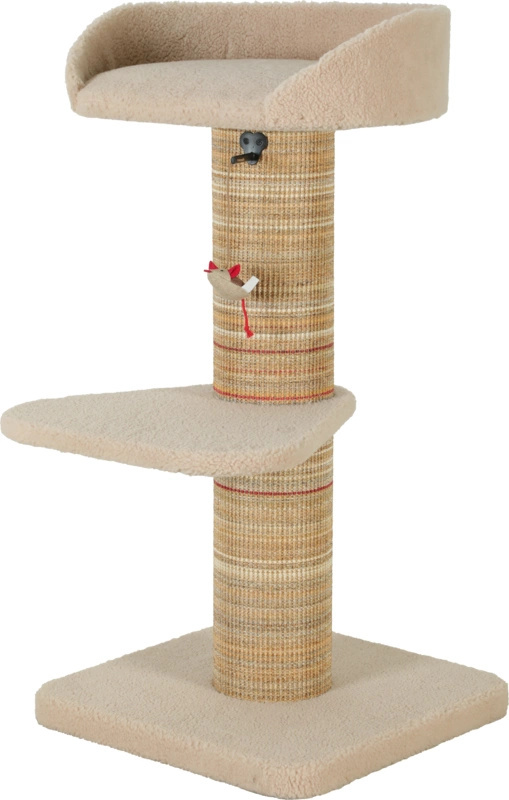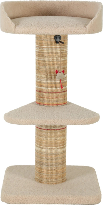 Drapak wykonano z płyty wiórowej z certyfikatem FSC®, co gwarantuje odpowiedzialne źródło drewna. Sizal pokrywający słupek jest odporny na intensywne użytkowanie, a miękkie legowisko z wyjmowaną poduchą pozwala łatwo utrzymać produkt w czystości. Zastosowane materiały zapewniają bezpieczeństwo i komfort dla kota.