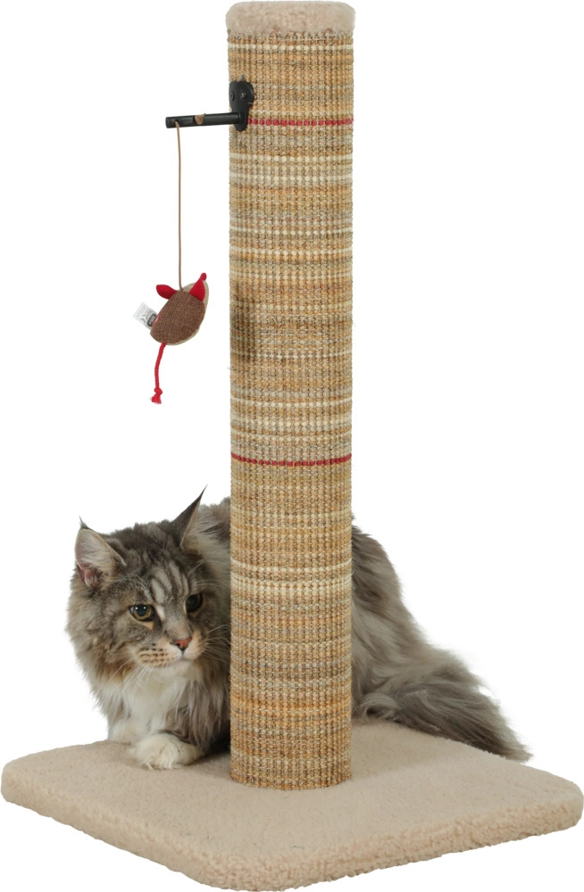 Drapak wykonano z trwałego MDF z certyfikatem FSC®, co potwierdza odpowiedzialne pozyskanie drewna. Słupek owinięty jest wytrzymałą matą sizalową, która skutecznie ściera pazury. Miękko wykończona podstawa zapewnia komfort i zapobiega rysowaniu podłóg.