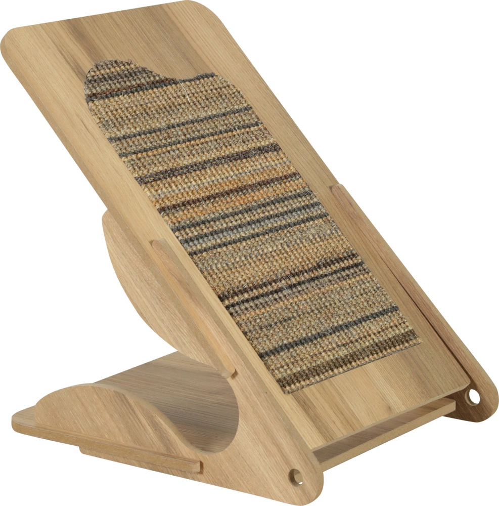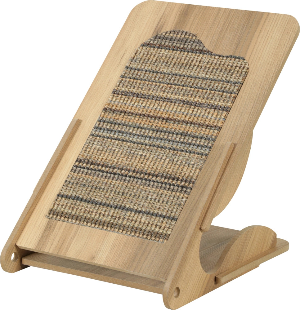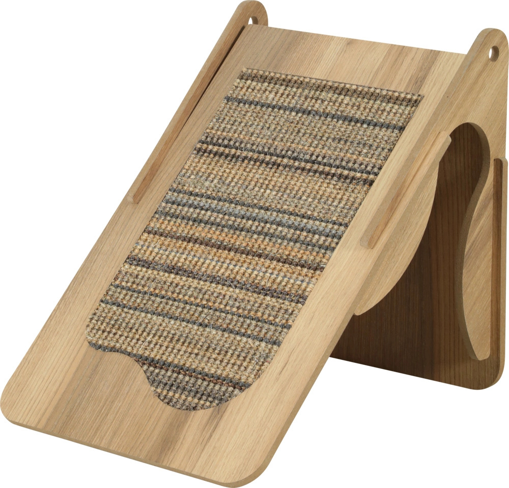 Drapak wykonano z płyty MDF z certyfikatem FSC®, co gwarantuje odpowiedzialne pozyskanie surowców. Powierzchnia drapaka pokryta jest naturalnym sizalem – materiałem odpornym na intensywne drapanie i atrakcyjnym dla kotów.