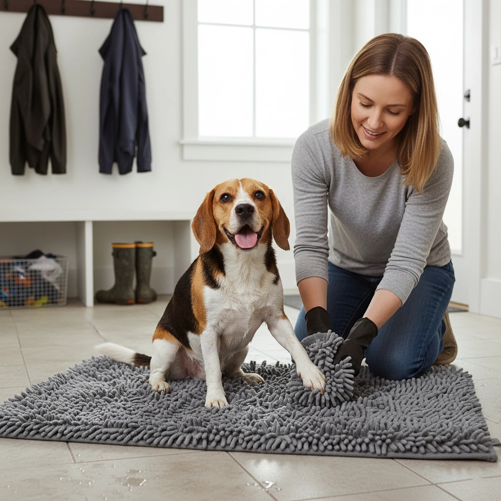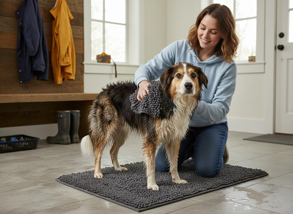 Ochrona wnętrz: Skutecznie chroni meble, podłogi i tapicerkę samochodową przed wilgocią i brudem przynoszonym przez mokrego psa.