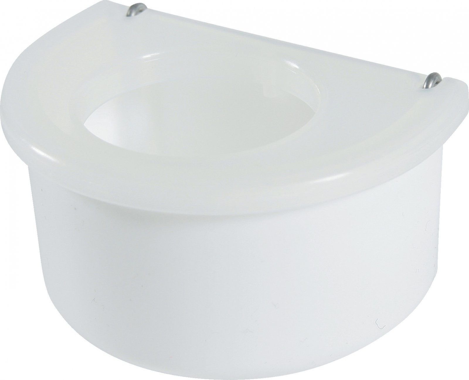 Specjalnie zaprojektowany kształt karmnika minimalizuje ryzyko rozsypywania pokarmu, co pozwala na utrzymanie czystości w klatce. - Łatwe mocowanie: