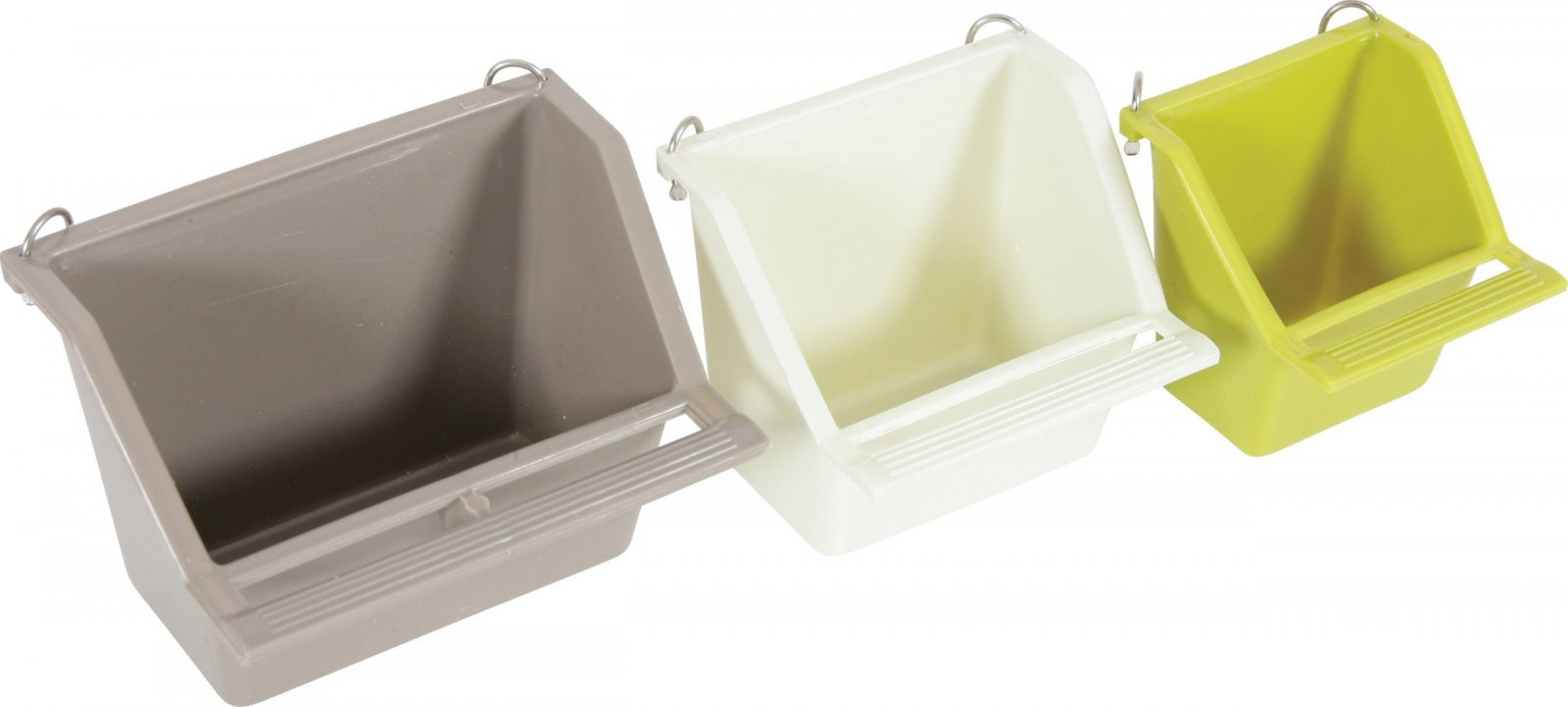 Praktyczne haczyki umożliwiają szybkie i pewne zamocowanie karmidełka w klatce, co zapobiega przypadkowemu przewracaniu i rozsypywaniu pokarmu. - Kolorystyczna kompatybilność