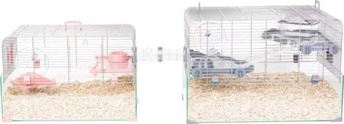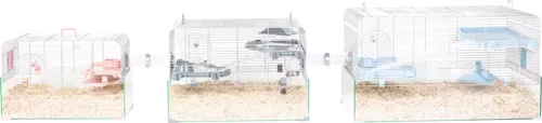 Nowa gama klatek modułowych i akcesoriów do klatek PANAS COLOUR dla małych gryzoni jest idealnie dopasowana do potrzeb myszy i chomików, a produkty wchodzące w jej skład zostały opracowane pod okiem lekarzy weterynarii. Głównym elementem klatek jest praktyczna, szklana kuweta, która nie tylko umożliwia obserwację zwierzęcia, ale także jest bardzo łatwa w czyszczeniu. W celu zapewnienia zwierzęciu jeszcze więcej przestrzeni i rozrywki, wszystkie klatki z gamy PANAS COLOUR można ze sobą łączyć. Po bokach znajdują się wyjmowane zaślepki, które można zastąpić sprzedawanymi oddzielnie tunelami, powodując połączenie dowolnej ilości klatek w jedno komfortowe, przestronne mieszkanie dla gryzonia. Ze względu na niewielkie wymiary klatki, rekomendujemy wykorzystanie możliwościa łączenia jej z innymi klatkami z tej samej serii, dla stworzenia zwierzęciu optymalnej przestrzeni życiowej. Klatki sprzedawane są w zestawie z miseczką, kołowrotkiem i domkiem, do którego produkcji użyto plastiku pochodzącego z recyklingu. Klatki dostępne są w 3 rozmiarach (50, 60, 80) i 3 stonowanych, pastelowych kolorach (różowy, niebieski, szary). Wszystkie produkty z gamy PANAS COLOUR zostały wyprodukowane w Europie.