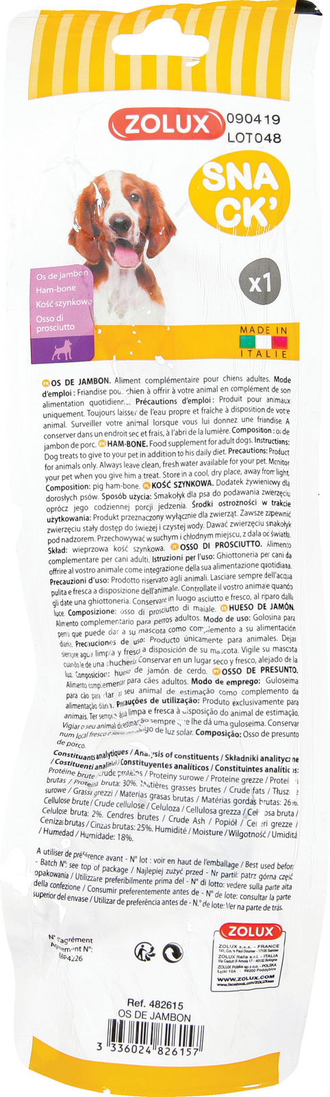 ZOLUX Kość o smaku szynki to doskonały przysmak, który można podawać zwierzęciu oprócz codziennej porcji jedzenia. - Bezpieczeństwo przede wszystkim