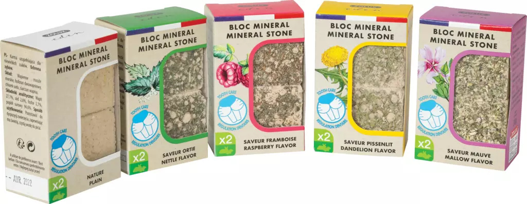 Kostki mineralne z dodatkiem naturalnych ziół regulują wzrost zębów, a zarazem są bardzo smaczne.