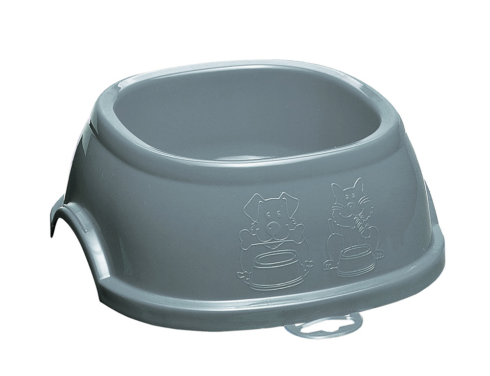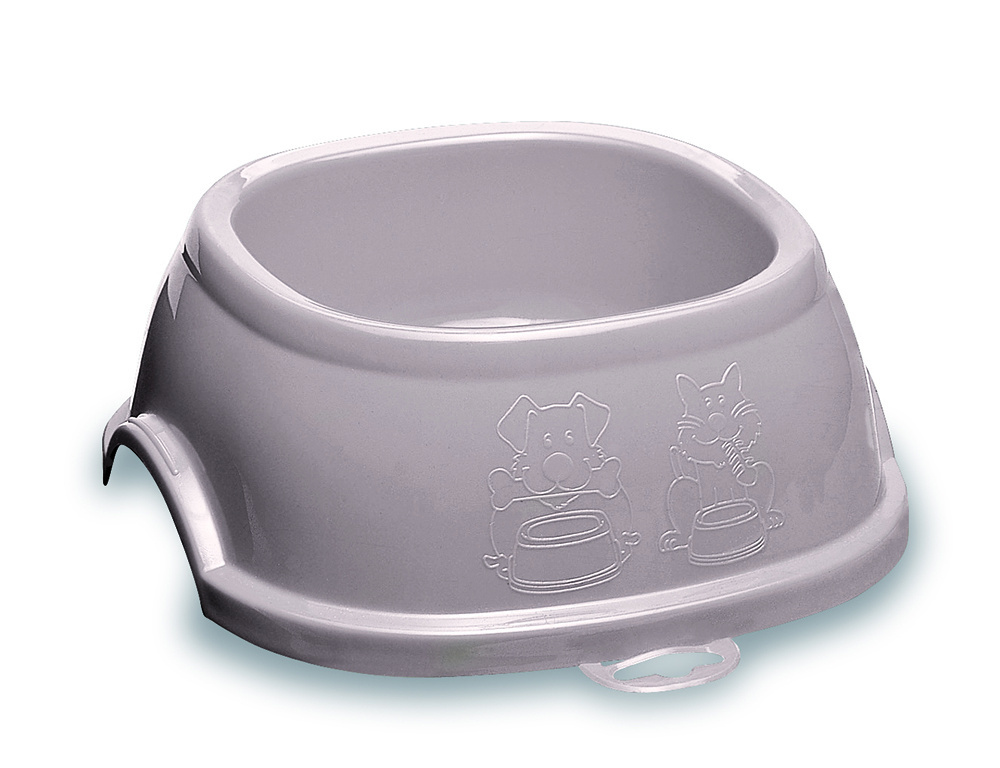 Lekka w trendy kolorze miska dla domowego pupila. Przeznaczona zarówno dla psów i kotów. Bardzo praktyczna, wykonana z wysokiej jakości plastiku. Łatwa do utrzymania w czystości. Zamocowane antypoślizgowe gumy zapobiegają ślizganiu się miski.