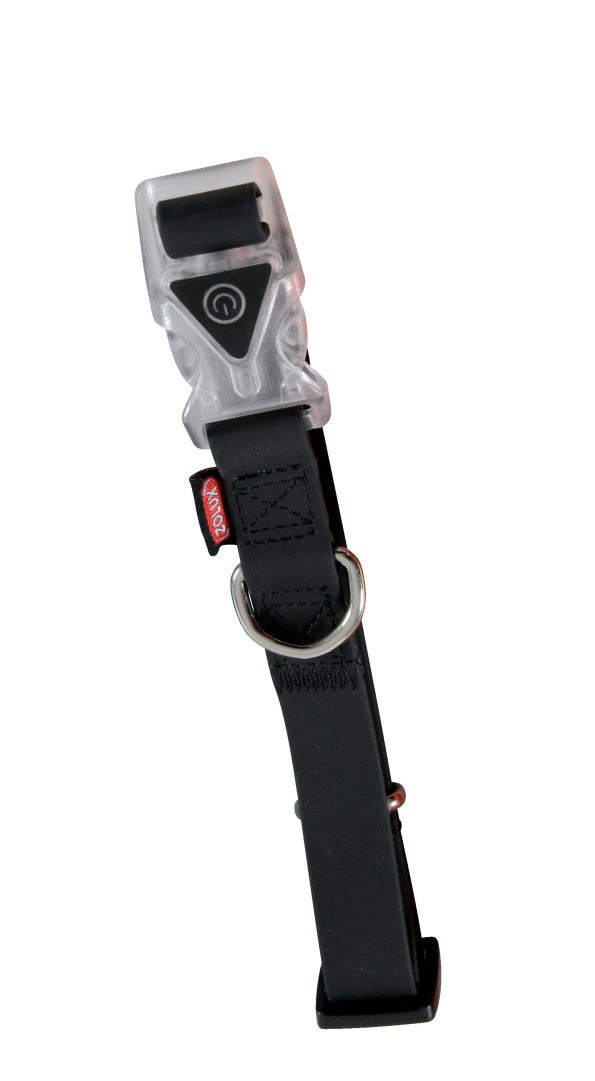 Regulowana obroża silikonowa ze świecącym zapięciem zapewni psu komfort i bezpieczeństwo. Wykonana z przyjemnego w dotyku, wodoodpornego silikonu, wyposażona w lampkę o trzech trybach pracy (światło stałe, światło pulsujące, światło szybko pulsujące) i trzech kolorach światła (zielone/czerwone/niebieskie) sprawi, że pies będzie dobrze widoczny nawet po zmroku. Dostępna w trzech rozmiarach i trzech wersjach kolorystycznych. Dzięki gładkiej powierzchni obroża bardzo łatwa do utrzymania w czystości.