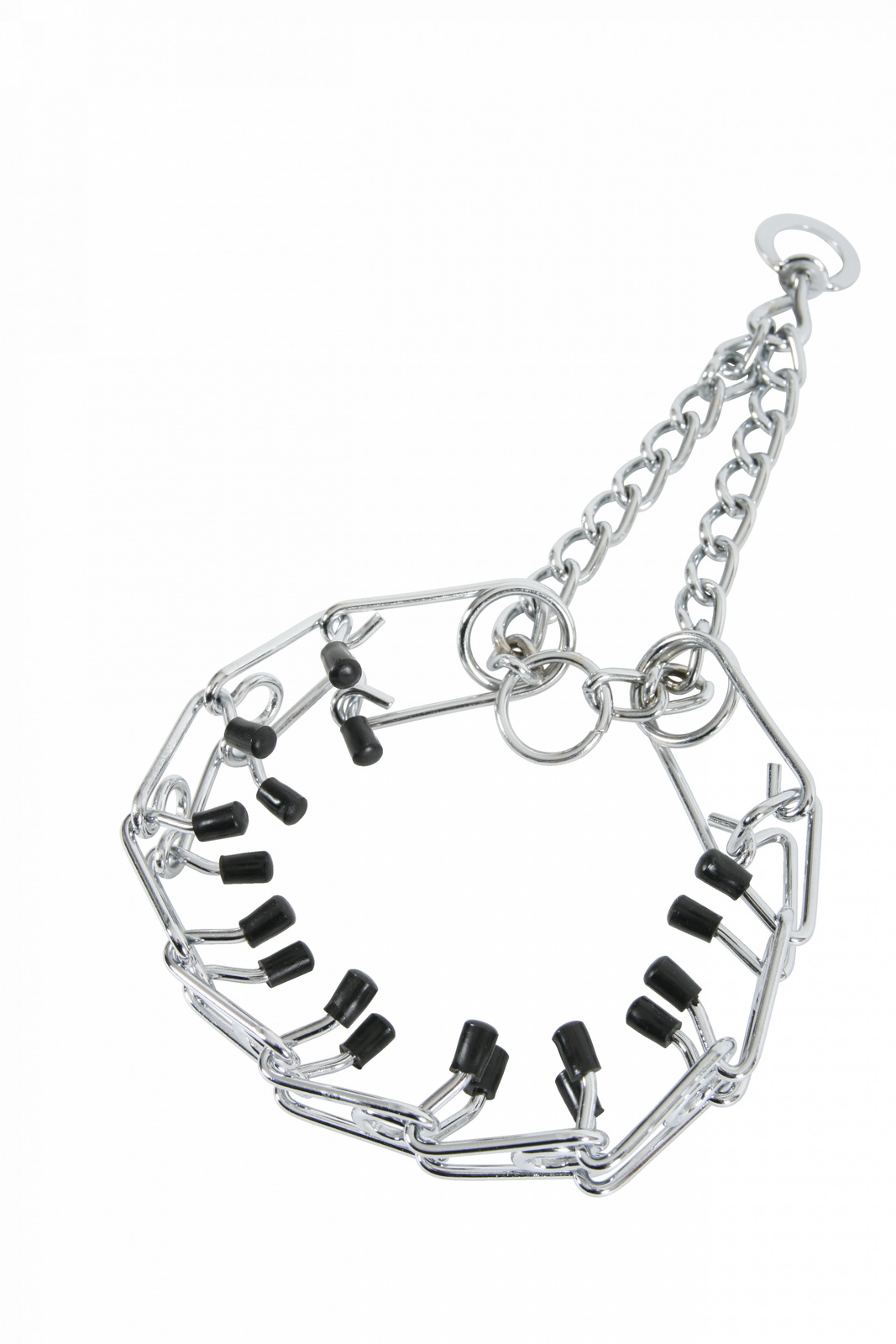 Kolczatka może być sprzymierzeńcem w czasie szkolenia silnych psów, które mają tendencję do szarpania smyczy w czasie spacerów. Ta praktyczna i solidna kolczatka wykonana ze srebrnego metalu, jest zarazem bardzo elegancka. Przeznaczona dla psów o obwodzie szyi od 35 do 46 cm.