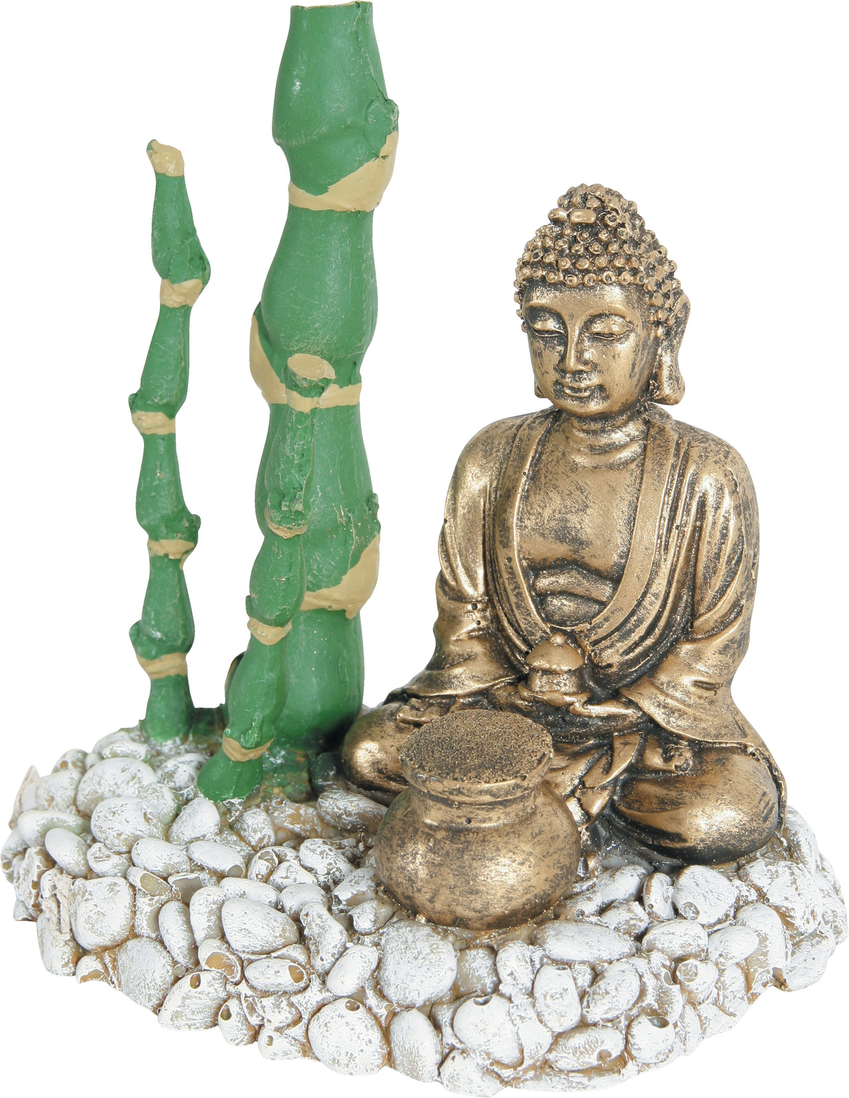Dekoracyjny dyfuzor Budda bambus wprowadzi w akwarium nastrój buddyjskiej filozofii zen. Bardzo naturalny wygląd i staranne wykończenia będą widoczne także pod wodą i z pewnością dopasują się doskonale do wystroju akwarium. Poza walorami dekoracyjnymi, ozdoba Budda bambus może stać się także idealną kryjówką dla rybek. Służy także jako dyfuzor powietrza, niezbędny do zapewnienia dobrego samopoczucia mieszkańców akwarium. Ta dekoracja wykonana z mieszanki żywicznej jest przeznaczona do akwariów o małej pojemności.