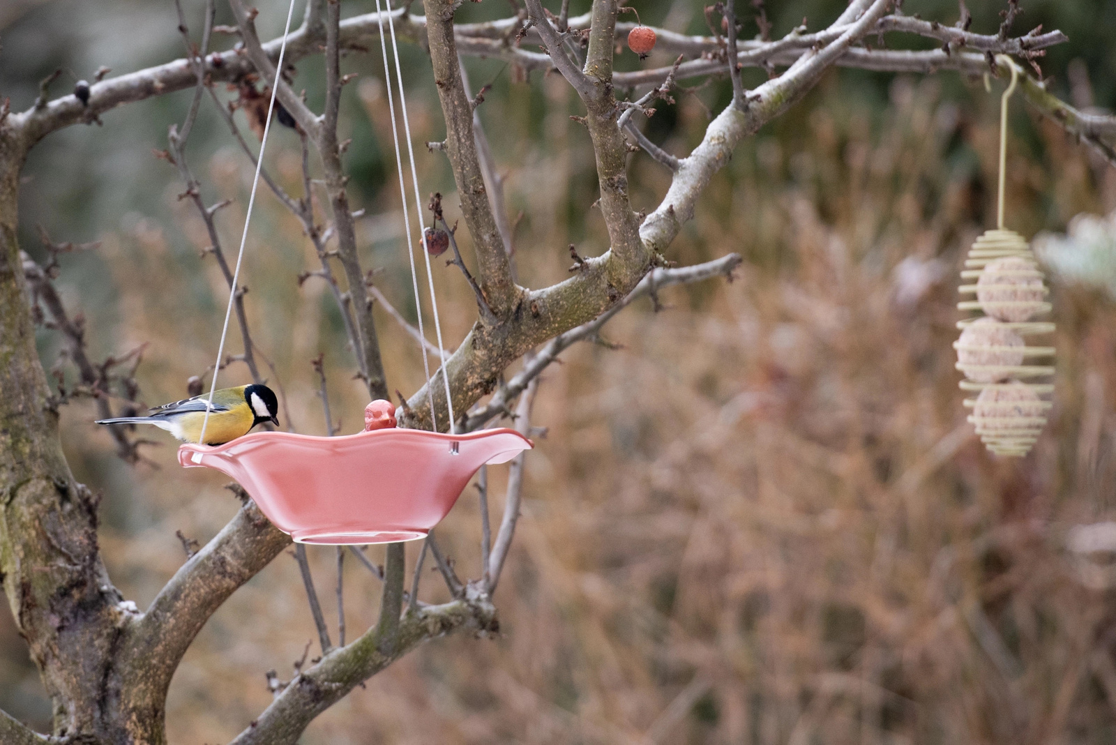 Wyposażony w solidne, metalowe linki, które zapobiegają przypadkowemu zerwaniu się poidła podczas używania przez ptaki. ✔