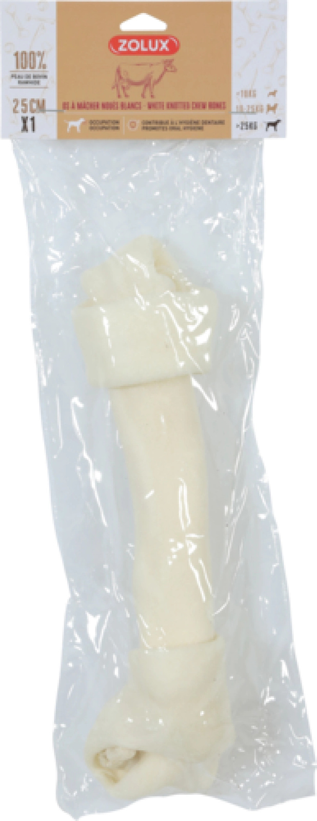Zadbaj o zdrowie i zadowolenie swojego psa z produktem ZOLUX Kość wiązana biała o długości 25 cm. Ta wysokiej jakości przekąska, wykonana w 100% ze skóry bydlęcej, to nie tylko smaczny przysmak, ale także funkcjonalne wsparcie dla zdrowia jamy ustnej Twojego pupila. ✨