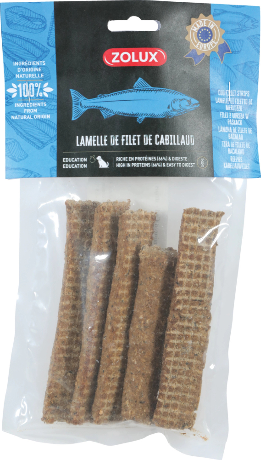 Zapewnij swojemu psu pyszne i zdrowe smakołyki. Wybierz ZOLUX Filet z dorsza w paskach i spraw, aby każdy dzień był wyjątkowy dla Twojego pupila. 🐾