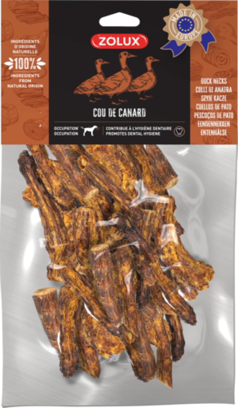 ZOLUX Przysmak naturalny dla psa Szyja kacza to smakowita i zdrowa przekąska stworzona z myślą o naturalnych potrzebach każdego psa. Dzięki starannie dobranemu składowi i zastosowaniu wyselekcjonowanych surowców wyróżnia się wysoką jakością i wszechstronnymi korzyściami zdrowotnymi. Idealnie uzupełnia codzienną dietę, jednocześnie dostarczając czworonogowi zajęcia i redukując poziom stresu.