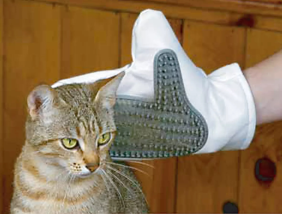Rękawica do pielęgnacji pozwala delikatnie usuwać martwe włosy z sierści psa lub kota. Posiada wypustki, które masują skórę zwierzęcia, sprawiając, że zabieg pielęgnacyjny jest dla niego prawdziwą przyjemnością. Rękawicę można prać