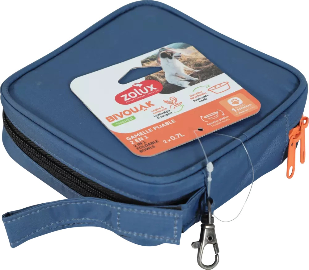ZOLUX Składana miska 2w1 dla psa BIVOUAK 2x700 ml niebieska