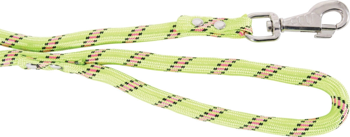 Seria sznurowych nylonowych smyczy, szelek i obroży składająca się ze smyczy, smyczy "lasso" i obroży zaciskowych. Te wysokiej jakości produkty, kolorowe i bardzo wytrzymałe, doskonale nadają się na długie spacery. Smycz "lasso" i obroża zaciskowa umożliwiają lepszą kontrolę nad psem, wywierając nacisk na jego szyję, gdy ten za mocno ciągnie na smyczy. Smycz pozwala na dużą swobodę ruchu ze względu na długość: 1,12 m, 2 m, 3 m lub 6 m.