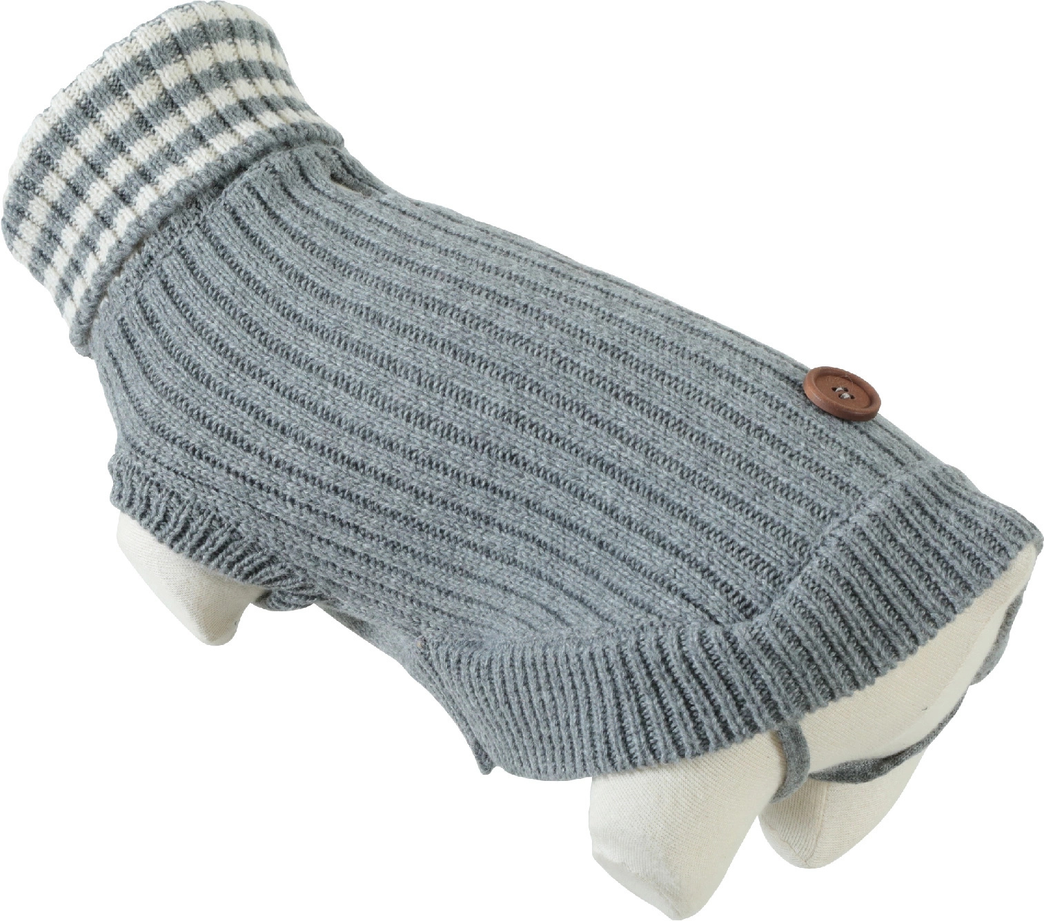 Sweterek dostępny jest w rozmiarze T35, co odpowiada długości grzbietu 35 cm, obwodowi szyi 33 cm i obwodowi klatki 42 cm. Idealnie dopasowuje się do średniej wielkości psów, zapewniając im optymalny komfort. ➕