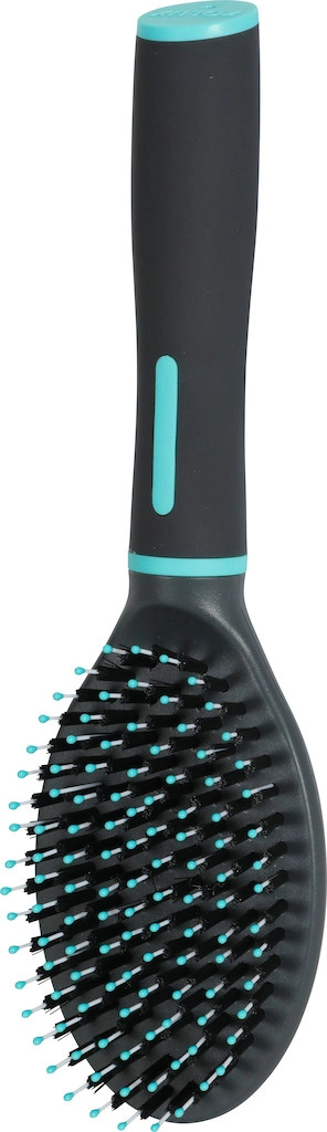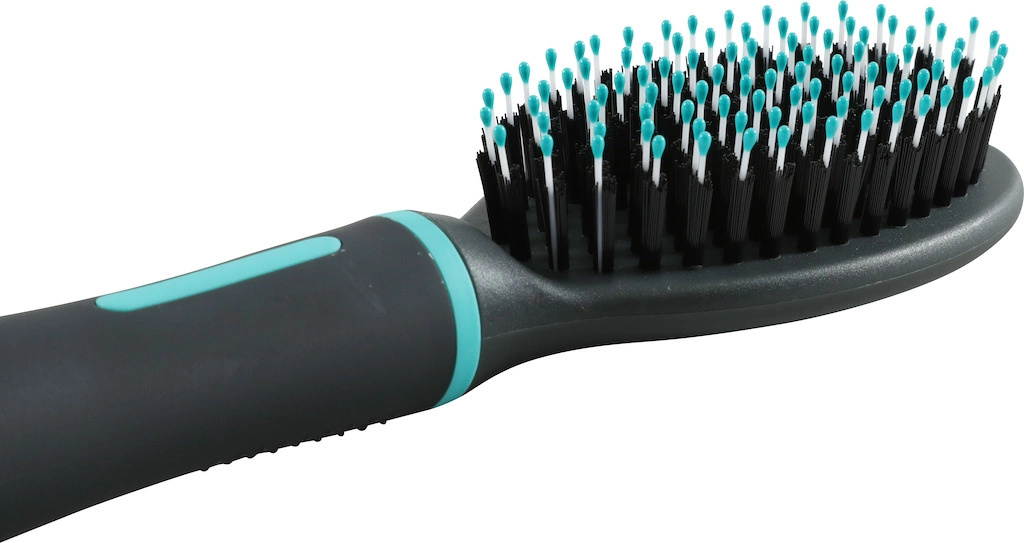 Szczotka wyróżnia się nowoczesnym designem oraz harmonijną kolorystyką. Odcienie turkusu i antracytu nadają jej stylowego, a jednocześnie profesjonalnego wyglądu, który zadowoli najbardziej wymagających użytkowników. Połączenie funkcjonalności z estetyką sprawia, że produkt jest wyjątkowy.