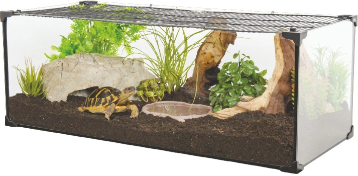 Produkt o wymiarach 35 cm x 80 cm x 25 cm jest przestronny i zapewnia odpowiednią ilość miejsca do swobodnego poruszania się. Wymiary opakowania to 36 cm x 81 cm x 26 cm, co zapewnia bezpieczny transport oraz łatwe przechowywanie. W skład zestawu wchodzi szklany zbiornik z siatką zabezpieczającą, która chroni zwierzę przed ucieczką, oraz cztery plastikowe nakładki na górne i dolne krawędzie. ➡