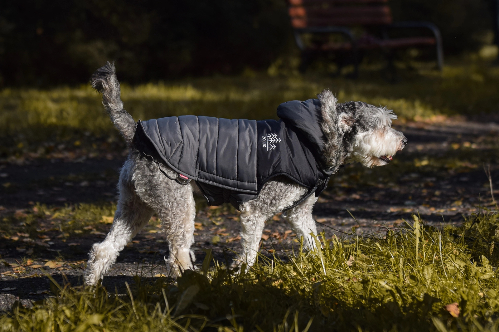 Pikowana, nieprzemakalna kurtka puchowa MOUNTAIN to połączenie nowoczesnego designu z wyjątkowym komfortem. Ciepła kurtka z odpinanym kapturem podszytym miękkim futerkiem idealnie się sprawdzi podczas zimowych spacerów. Ubranko można dopasować dzięki zastosowaniu ściągaczy i rzepów. Kurtka posiada otwory na łapki i smycz, a także umieszczony na grzbiecie ozdobny nadruk. Produkt dostępny jest w czterech wersjach kolorystycznych: szarej, khaki, pomarańczowej i czerwonej oraz w 5 rozmiarach (T25, T30, T35, T 40 i T45).