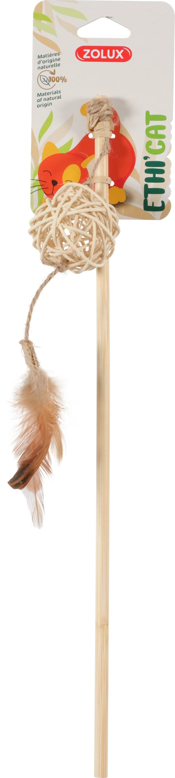 ZOLUX Zabawka dla kota wędka piłka z rattanu i piórka ETHICAT 45,4 cm