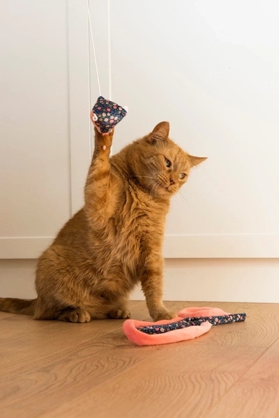 - Detale ze sznurka bawełnianego: dodatkowe elementy angażujące kota w zabawę, wygodne do chwytania i gryzienia.
