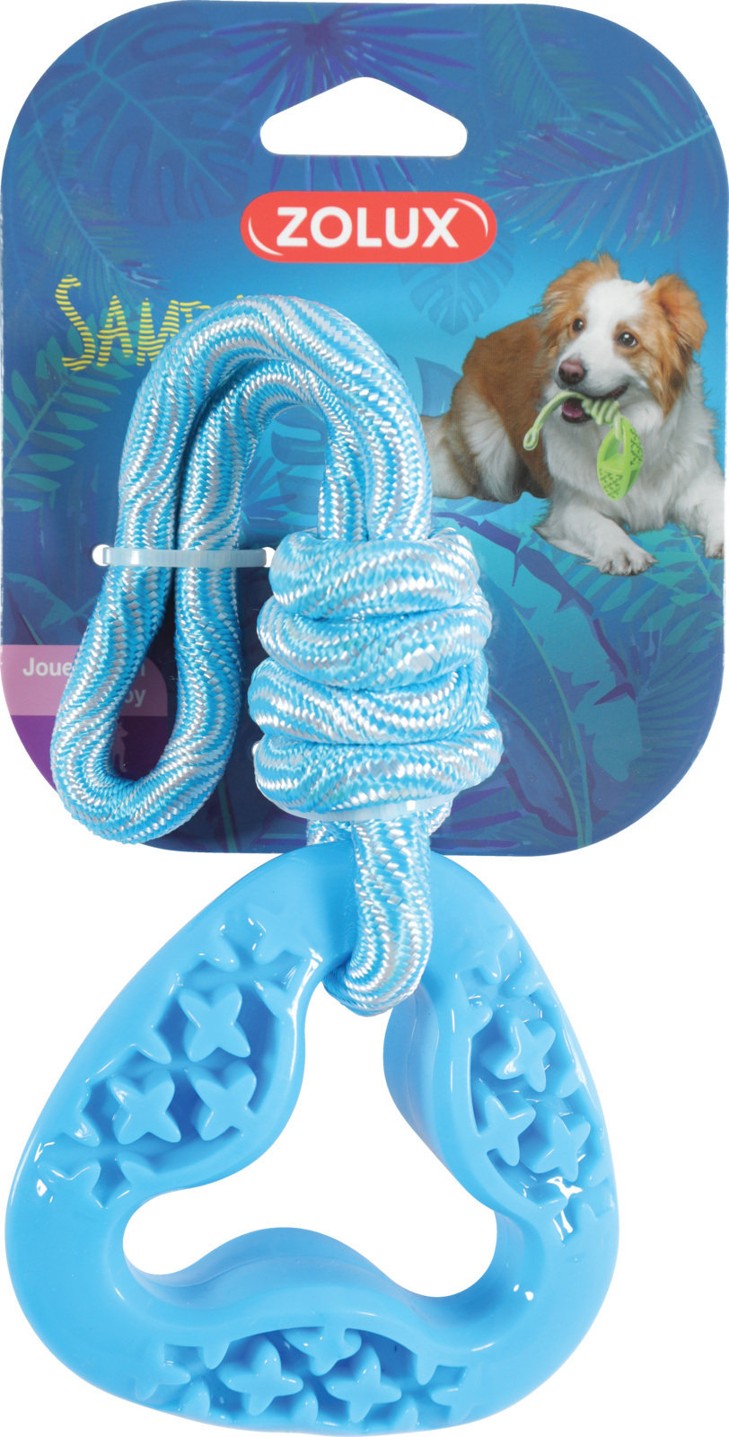 Zolux Zabawka dla psa trójkątna ze sznurem TPR SAMBA 26 cm kol. niebieski
