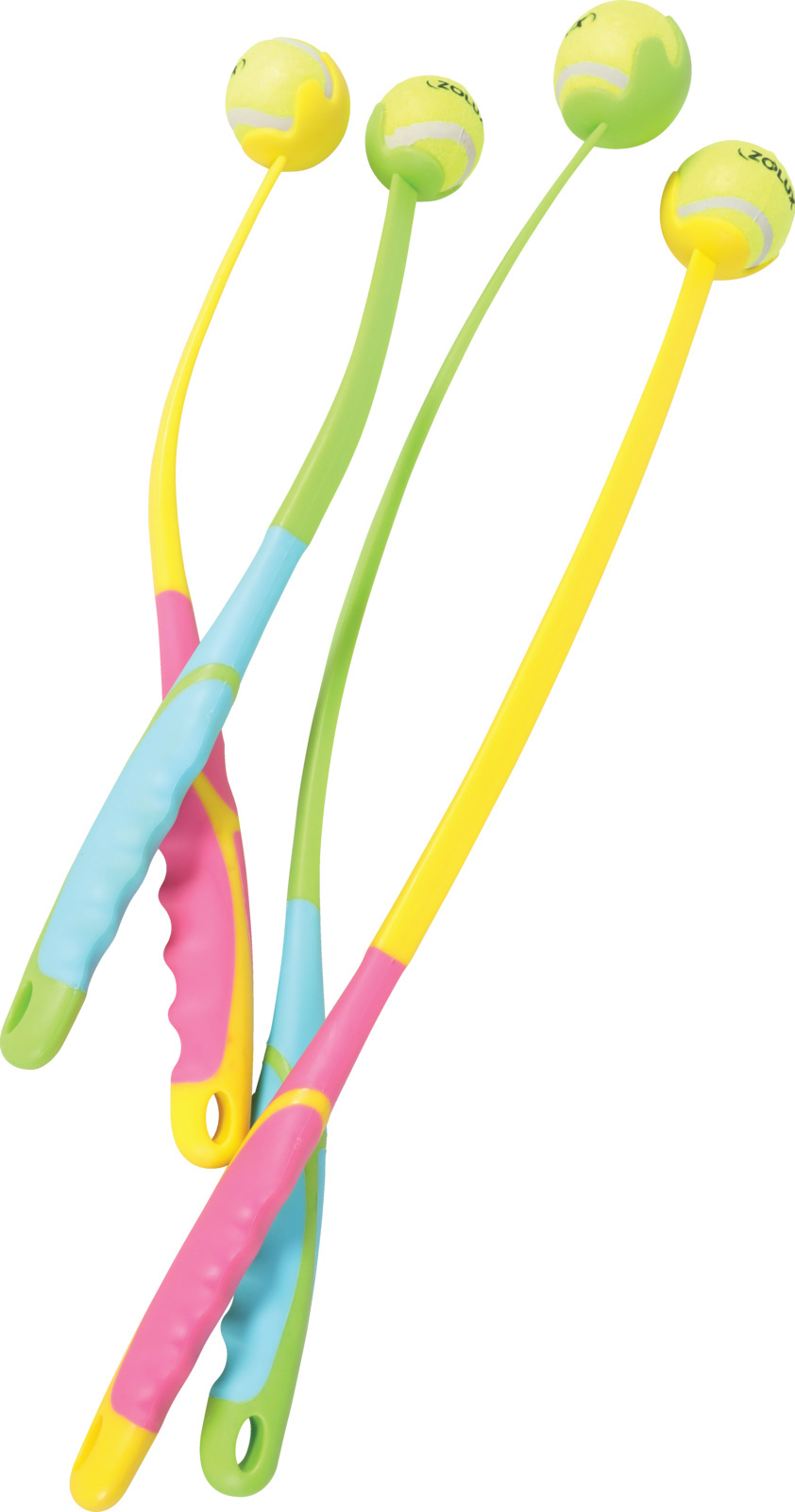 Wyrzutnia wraz z piłkami dostępne są w dwóch rozmiarach, małym i dużym oraz w dwóch wersjach kolorystycznych, różowo-żółtej i zielono-niebieskiej. Ten gadżet umożliwia rzucanie piłki na większe odległości, a także podnoszenie jej bez konieczności schylania się, oszczędzając energię na dłuższą zabawę. Wyrzutnia piłek posiada specjalnie opracowany ergonomiczny uchwyt dla optymalnego komfortu.