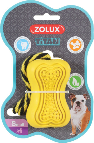 Zolux Zabawka kauczukowa dla psa wytrzymała ze sznurem TITAN roz.S żółty